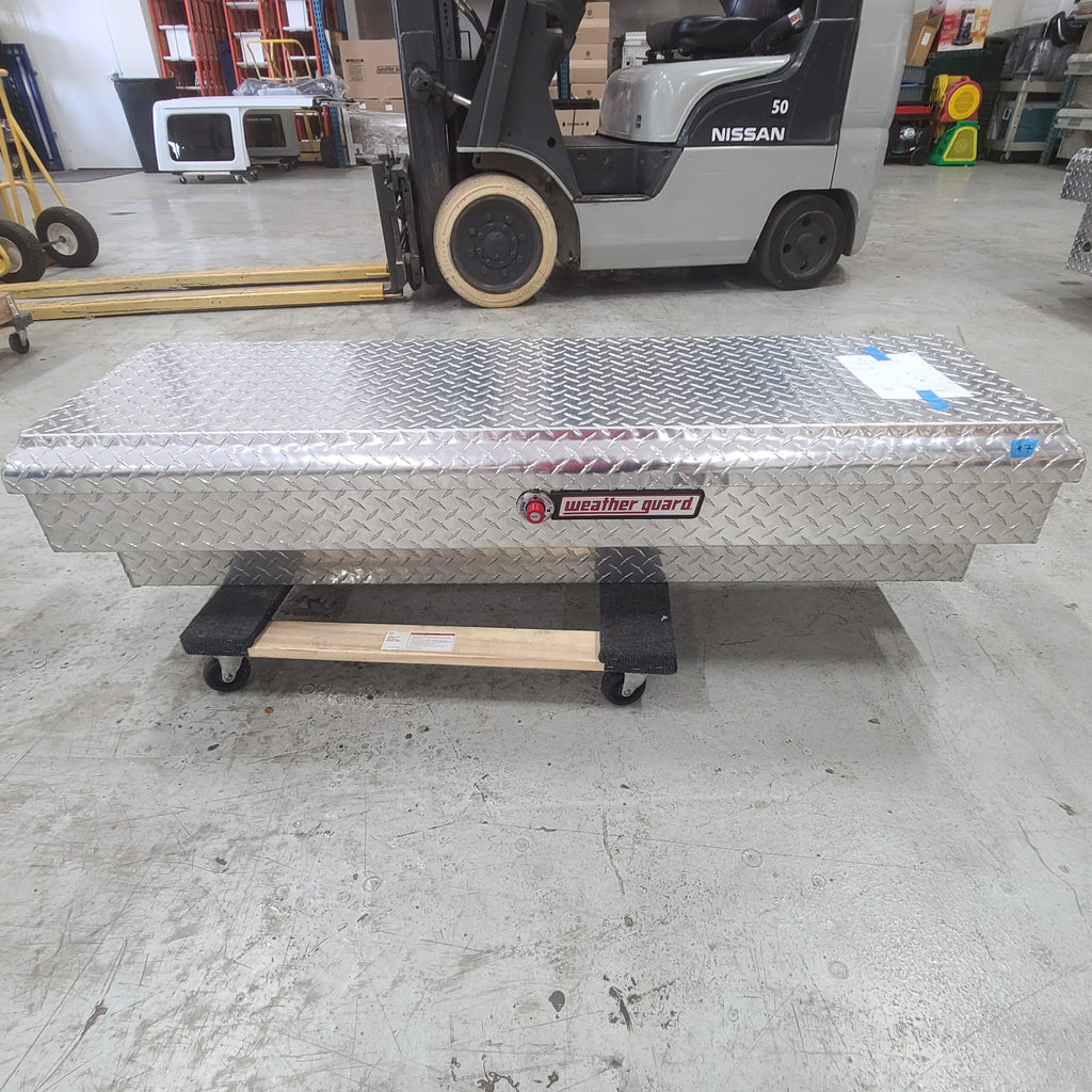 USED WEATHER GUARD 174-0-01 LO-SIDE ALUM. TOOL BOX Tool Box; Lo-Side; Side; Single Lid; Diamond Tread; Bright; Aluminum; 56-1/4 Inch Length x 16-1/4Inch Width x 13-1/4 Inch Height